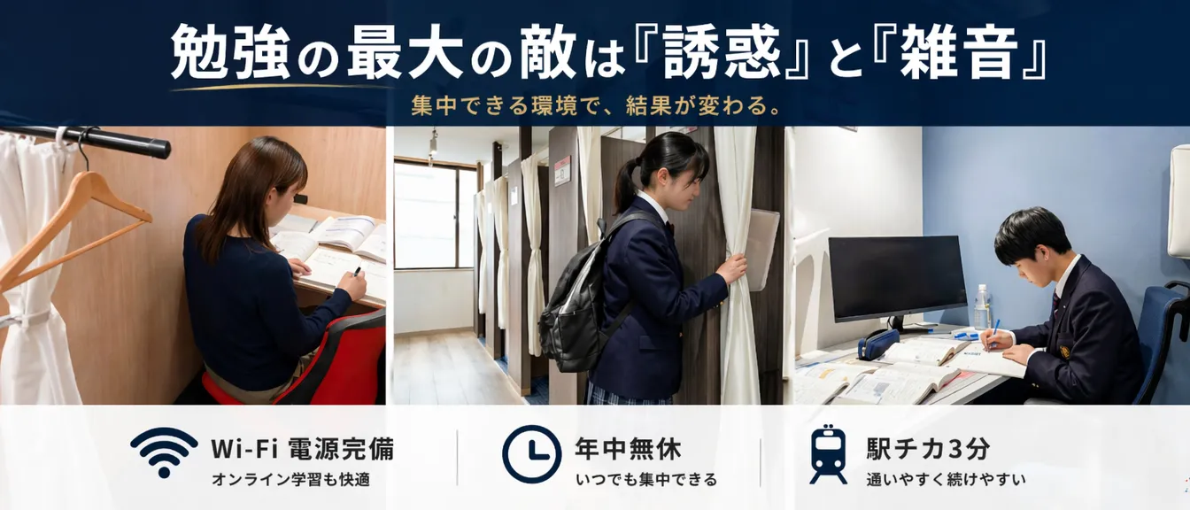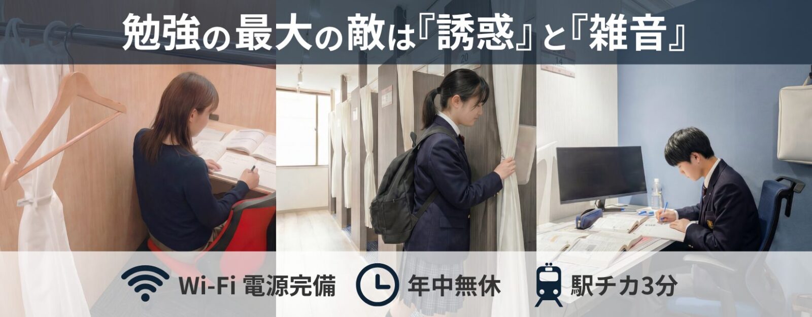 - 圧倒的な集中力: 勉強する人しかいない空間で集中力が違います。